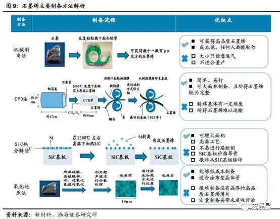 在制備技術層面,氧化還原法與物理剝離法常被用作制備石墨烯粉體,而化學氣相沉積法與外延生長法常被用作制備石墨烯薄膜。