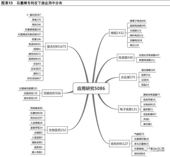 專利研究方向主要集中于石墨烯的制備以及應用研究,應用研究中以復合材料和儲能最多,其次是功能材料與傳感器。