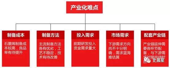 石墨烯產(chǎn)業(yè)化難點主要體現(xiàn)在市場需求不明確、研發(fā)投入大、制備成本高。