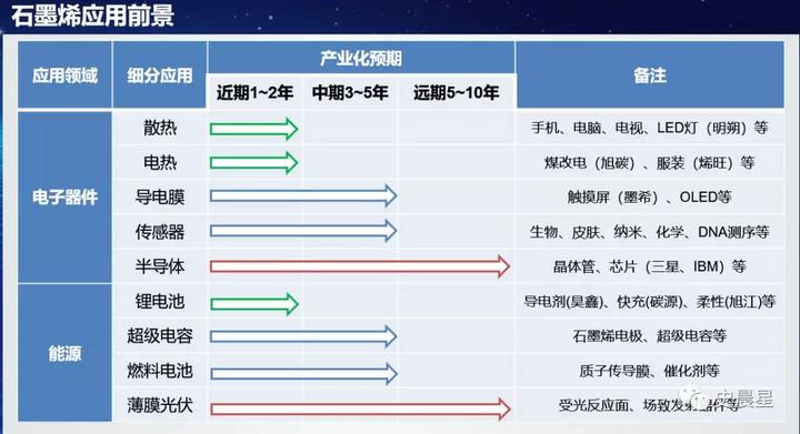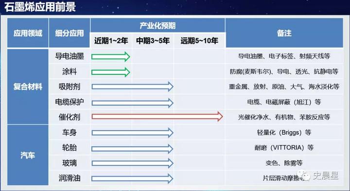 綜合考量石墨烯在各個下游領域的技術研究迚展、政策引導方向以及下游市場的接受度,我們認為石墨烯產(chǎn)業(yè)爆發(fā)點已初步形成,未來將逐步在各個細分領域分階段釋放。