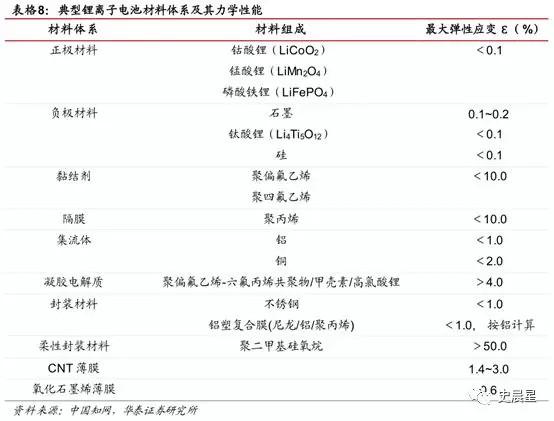 石墨烯的力學性能制作柔性基體使得鋰電池具備彎折、拉伸、甚至扭曲、折疊等功能,通過加入可以承載活性物質的柔性基體,實現(xiàn)鋰電池的可彎曲性。