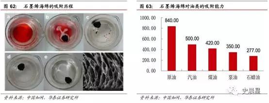 石墨烯能夠有效地吸附辛烷、泵油、柴油、煤油等多種油類,它的吸附過程像是石墨烯的孔洞容納了油類污染物,并且石墨烯海綿能夠漂浮在水面上,非常適合海上元原油污染等實際應用場合。