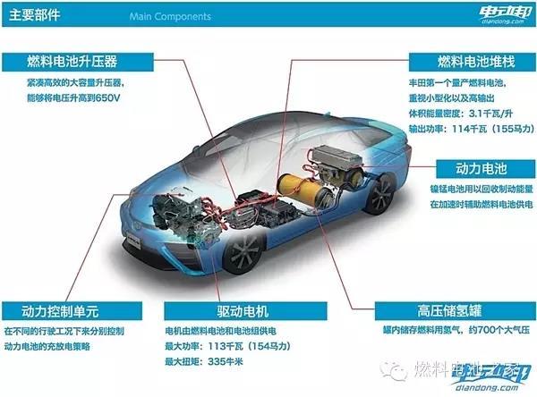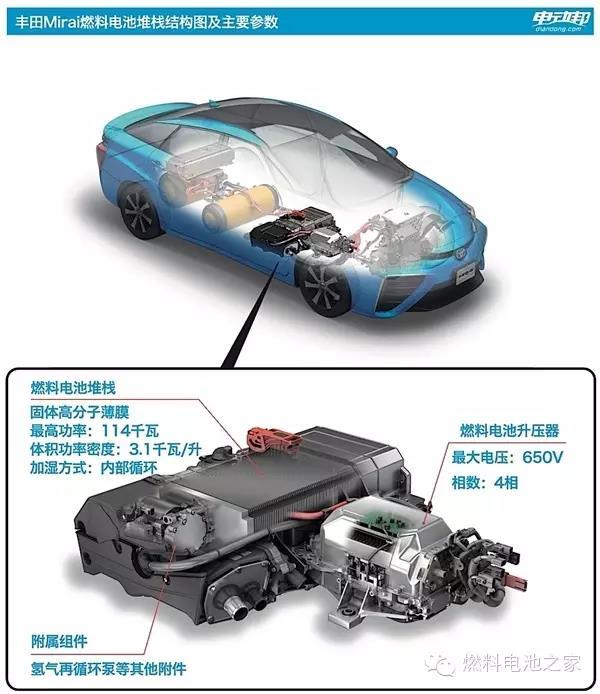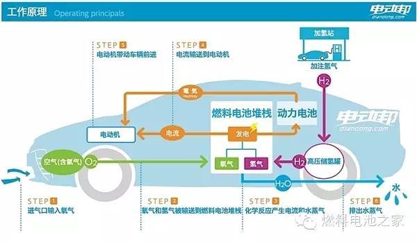 Mirai的工作原理,通過電解水制氫,再把氫氣加入車內(nèi)發(fā)生化學(xué)反應(yīng)驅(qū)動(dòng)電機(jī)為車提供動(dòng)力。