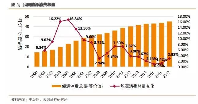 2018年4月11日,電力規(guī)劃設(shè)計總院發(fā)布的《中國能源發(fā)展報告2017》預(yù)計,2018年我國能源消費總量呈低速增長,生產(chǎn)供應(yīng)總體穩(wěn)中有升?!秷蟾妗氛J(rèn)為,根據(jù)經(jīng)濟(jì)發(fā)展?fàn)顩r、各行業(yè)發(fā)展前景和用能需求,2018年我國能源消費將延續(xù)消費結(jié)構(gòu)清潔化、高效化趨勢,消費總量呈低速增長,預(yù)計約45.7億噸標(biāo)準(zhǔn)煤。其中,非化石能源和天然氣仍是拉動能源消費增長的主導(dǎo)力量,占一次能源消費的比重繼續(xù)提高,天然氣消費量約2640億立方米;煤炭消費量將略有減少,約在38.5億噸,占一次能源消費比重繼續(xù)下降;石油消費量約6億噸,占一次能源消費比重保持穩(wěn)定。從生產(chǎn)端來看,預(yù)計2018年一次能源生產(chǎn)總量約36.7億噸標(biāo)準(zhǔn)煤,其中煤炭36.6億噸,石油1.91億噸,天然氣1560億立方米,一次電力2.1萬億千瓦時?!秷蟾妗凤@示,2017年我國能源生產(chǎn)總量達(dá)到35.9億噸標(biāo)準(zhǔn)煤。