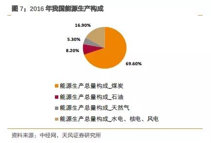 可再生能源成本降低,能源供給清潔化趨勢明顯。同時,我國能源結(jié)構(gòu)也正逐步轉(zhuǎn)換到清潔發(fā)電,強(qiáng)大的部署和有力的政策降低了可再生能源的成本。從2000年至2016年,天然氣、水電、核電和風(fēng)電等能源供給也在穩(wěn)步增加,在我國能源生產(chǎn)總量的占比逐漸擴(kuò)大,從2000年的10.3%增長至22.2%。