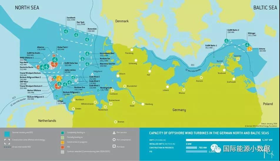 中國儲能網(wǎng)訊:2017年德國新吊裝了222臺海上風力發(fā)電機,新增裝機容量1.25吉瓦,比上一年增長30%,占全球海上風電增量的40%。到2017年末,德國海上風機共有1169座(997座在北海,172座在波羅的海),總裝機容量5.38吉瓦,2017年發(fā)電量179億千瓦時,占全國發(fā)電量的2.7%,就業(yè)崗位約20000人。按照德國政府的目標,2020年德國海上風電裝機將達到7.7吉瓦,2030年達到15吉瓦。2017年海上風機的平均單機容量為6兆瓦,預計2025年增至13-15兆瓦。