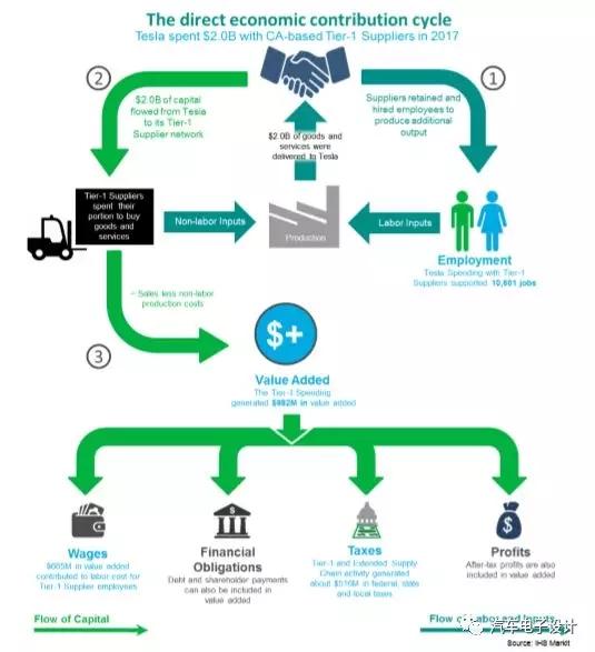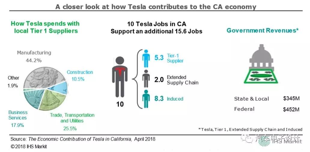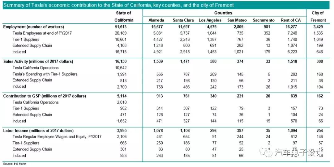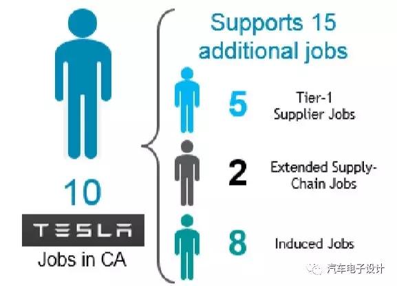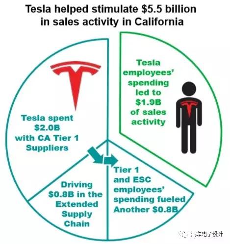 2017年,特斯拉的業(yè)務(wù)直接為加州GSP貢獻(xiàn)了20億美元,在供應(yīng)鏈帶來8億美金的生意,然后驅(qū)動8億美金的直接采購。特斯拉的員工驅(qū)動了19億美金的商業(yè)價(jià)值