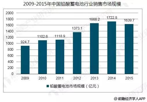 據(jù)前瞻產(chǎn)業(yè)研究院《中國鉛酸蓄電池行業(yè)市場前瞻與投資戰(zhàn)略規(guī)劃分析報告》數(shù)據(jù)顯示,隨著經(jīng)濟的持續(xù)快速發(fā)展,汽車工業(yè)、通訊、電力、交通鐵路、計算機等基礎(chǔ)產(chǎn)業(yè)發(fā)展十分迅速,這些行業(yè)都處于一個高成長時期,對蓄電池的需求日益增長,大大促進了蓄電池行業(yè)的發(fā)展,2015年我國鉛酸電池行業(yè)銷售市場規(guī)模約1639.7億元。