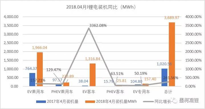 2、2018年前4個月鋰電裝機8.23GWh,同比增長212.91%