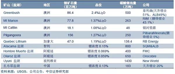 全球主要鋰礦山和鹽湖統(tǒng)計(jì)