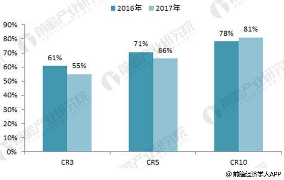 據(jù)前瞻產(chǎn)業(yè)研究院最新發(fā)布的《動(dòng)力鋰電池行業(yè)市場(chǎng)需求預(yù)測(cè)與投資戰(zhàn)略規(guī)劃分析報(bào)告》分析指出,從2016-2017年中國(guó)動(dòng)力電池行業(yè)集中度變化可知,行業(yè)前三與行業(yè)前五企業(yè)市場(chǎng)份額有所有所下降,而行業(yè)前十市場(chǎng)份額有所上升,2017年動(dòng)力電池行業(yè)集中度進(jìn)一步提高。