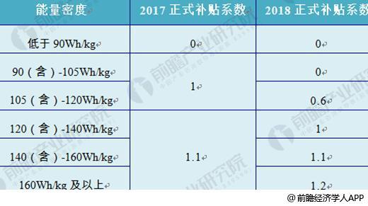 圖表3:2017-2018年不同能量密度新能源汽車(chē)補(bǔ)貼系數(shù)