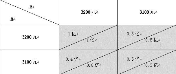 如果兩家公司都把價格降至3100元/千瓦,結果會怎樣?如果它們都降價100元,現(xiàn)在中標容量仍為每家50萬千瓦。獲得的利潤均為(3100-3000)×50萬千瓦,每家獲得的利潤為0.5億元。
