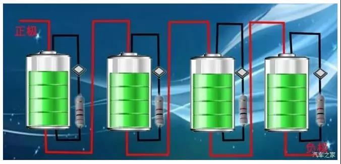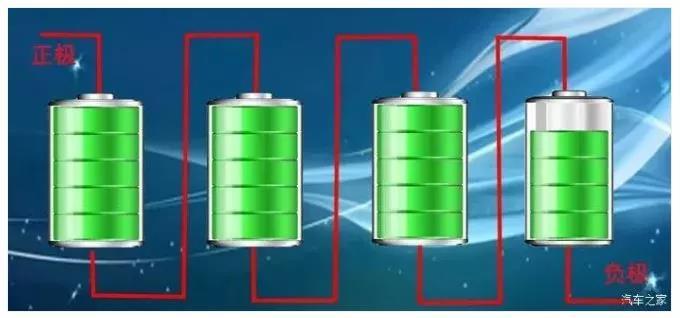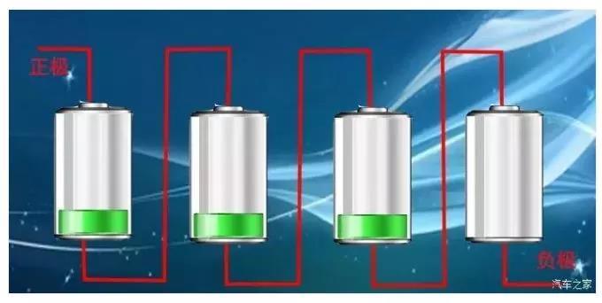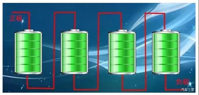 連接方式為串聯(lián)(全部電芯串聯(lián)),串聯(lián)的電池如下圖,形象一點(diǎn)說(shuō),就是類似于我們以前用過(guò)的手電筒,幾個(gè)電池頭尾相接。