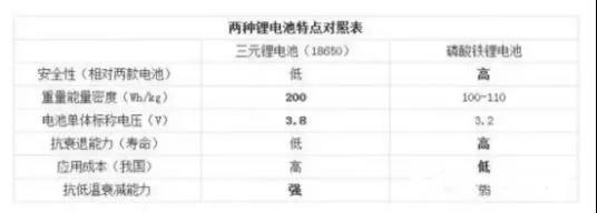 首先我們來(lái)談?wù)勌坪颓氐碾姵?,型?hào)應(yīng)該是一樣的,只是秦的電池組電芯數(shù)量比較少,容量13度,唐的比較多,18度。單個(gè)的電芯都是比亞迪自己制造的磷酸鐵鋰電池,額定電壓3.2V,容量26AH。為什么不是最近比較火的三元鋰電池呢?原因如下圖: