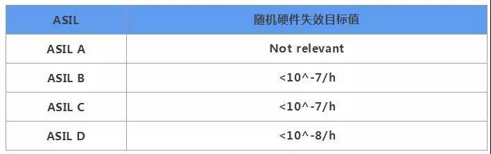 不同安全等級(jí)產(chǎn)品的隨機(jī)硬件失效率要求