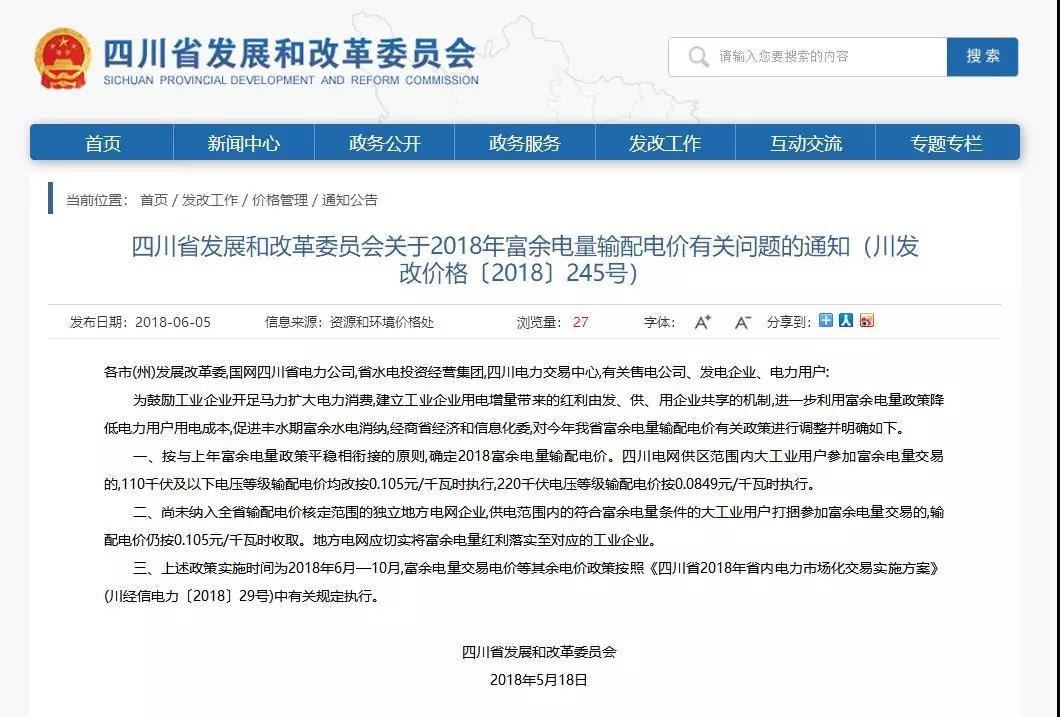 也就是說,四川省2018年6-10月份富余電量交易已經(jīng)基本可以確定用戶最終的用電價格范圍。