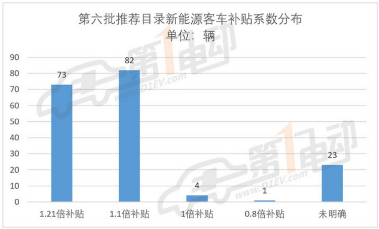 本批目錄中有18款插電式混合動(dòng)力客車,新政對(duì)插混客車補(bǔ)貼標(biāo)準(zhǔn)為節(jié)油率水平在60-65%(含)之間為0.8倍補(bǔ)貼,65-70%(含)為1倍補(bǔ)貼,70%以上為1.1倍補(bǔ)貼。由于插混客車未公開節(jié)油率水平及相關(guān)車型參數(shù),無法對(duì)插混客車進(jìn)行補(bǔ)貼系數(shù)評(píng)估。