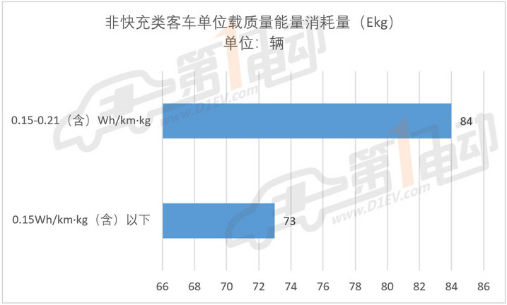 2018補(bǔ)貼方案增加了對(duì)Ekg的考察,要求單位載質(zhì)量能量消耗量(Ekg)不高于0.21Wh/km·kg,0.15-0.21(含)Wh/km·kg的車型按1倍補(bǔ)貼,0.15Wh/km·kg及以下的車型按1.1倍補(bǔ)貼。本批目錄中,純電動(dòng)客車產(chǎn)品均在0.21Wh/km·kg以下,非快充類純電動(dòng)客車產(chǎn)品在0.15-0.21(含)Wh/km·kg之間的為84款,可拿1倍補(bǔ)貼;0.15Wh/km·kg(含)以下的產(chǎn)品則有73款。