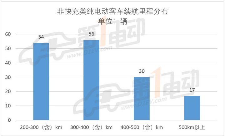 本批目錄中的非快充類純電動(dòng)客車?yán)m(xù)航里程集中分布在200(含)-300km之間,共計(jì)54款;300(含)-400km和400(含)-500km之間的車型分別為56款和30款,500km以上車型共計(jì)17款,續(xù)航里程最高的車型為鄭州宇通客車編號(hào)為ZK6105BEVG59C的純電動(dòng)客車,續(xù)航里程達(dá)650km。另外值得指出的是,600km以上的車型增加到了4款,往期推薦目錄中通常僅有一款。
