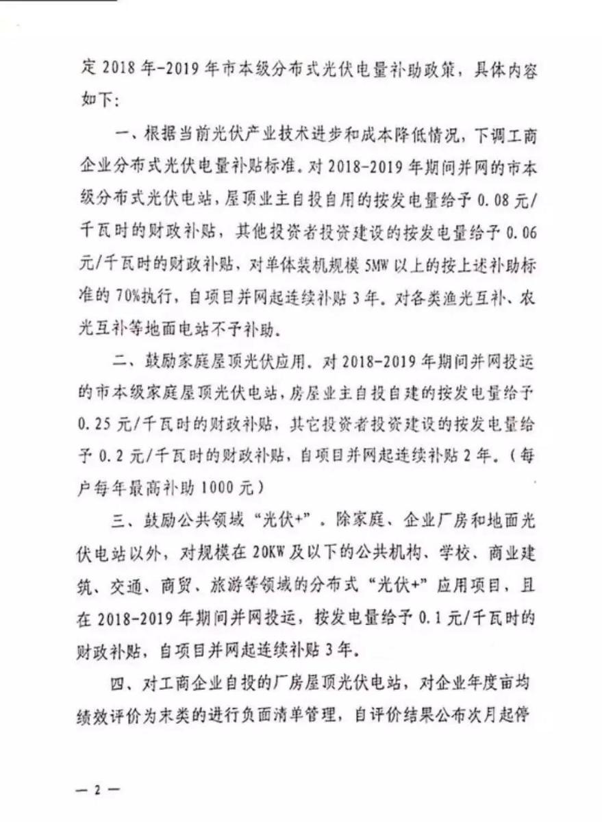 中國儲能網(wǎng)訊:6月4日,嘉興發(fā)布了《關(guān)于進(jìn)一步實施嘉興市本級分布式光伏電量補貼政策的通知》,明確提出鼓勵家庭屋頂光伏應(yīng)用,對2018-2019年期間并網(wǎng)投運的市本級家庭屋頂光伏電站,房屋業(yè)主自投自建的按發(fā)電量給予0.25元/千瓦時的財政補貼,其它投資者投資建設(shè)的按發(fā)電量給予0.2元/千瓦時的財政補貼,自項目并網(wǎng)起連續(xù)補貼2年。(每戶每年最高補助1000元)。