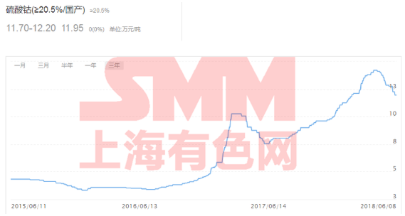 據(jù)SMM數(shù)據(jù)顯示,作為汽車電池和電子產(chǎn)品上使用的硫酸鈷,上周硫酸鈷價格下跌至一個半月以來最低點。