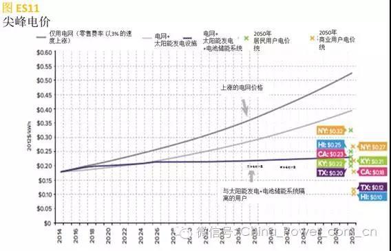 對投資太陽能發(fā)電+電池儲能系統(tǒng)的用戶而言,有選擇權(quán)是件好事。我們的分析結(jié)果表明,投資智能太陽能發(fā)電+電池儲能系統(tǒng)可以有助于用戶保持在穩(wěn)定的尖峰電價水平,從而不會因為電網(wǎng)供應(yīng)的電力價格上漲而受影響。與此同時,傳統(tǒng)的電網(wǎng)用戶和完全脫離電網(wǎng)的用戶分別會由于零售電價上漲和獨立太陽能發(fā)電+電池儲能系統(tǒng)的高成本而面臨更高的電價水平 。