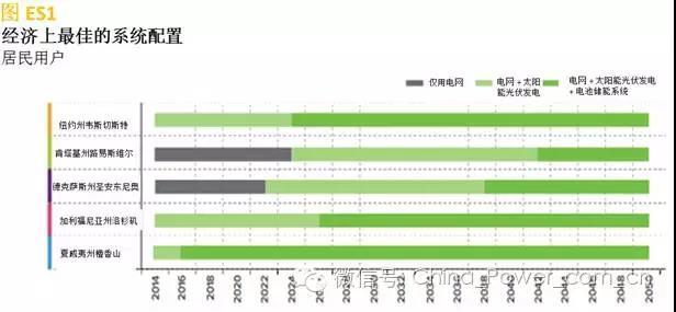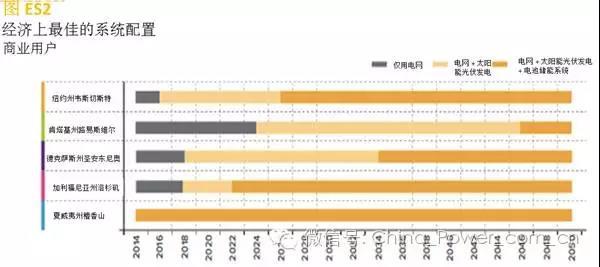 我們的分析有幾項重大發(fā)現(xiàn):太陽能發(fā)電+電池儲能系統(tǒng)能快速地實現(xiàn)成本效益。從用戶的角度看,經(jīng)濟(jì)性最優(yōu)的系統(tǒng)配置將隨著時間推移而產(chǎn)生變化,短期來看是僅依賴電網(wǎng)的模式,逐漸會發(fā)展成為電網(wǎng)+太陽能發(fā)電的模式,長期來看最優(yōu)的系統(tǒng)將是電網(wǎng)+太陽能發(fā)電+電池儲能系統(tǒng)模式。與我們在《脫離大電網(wǎng)的經(jīng)濟(jì)效益》報告中利用模型分析的無電網(wǎng)太陽能發(fā)電+電池儲能系統(tǒng)實現(xiàn)經(jīng)濟(jì)性平價的日期相比,本報告中的聯(lián)網(wǎng)系統(tǒng)實現(xiàn)經(jīng)濟(jì)效益的時間會提前很多,而且電力公司將在其主要資產(chǎn)的經(jīng)濟(jì)年限及成本回收期之內(nèi),損失大量用電負(fù)荷。僅依賴太陽能發(fā)電設(shè)施的系統(tǒng)容量較小,今天已經(jīng)在我們分析的五個地區(qū)中的三個地區(qū)實現(xiàn)了經(jīng)濟(jì)效益,十年之內(nèi)會在所有地區(qū)實現(xiàn)經(jīng)濟(jì)效益。新用戶將發(fā)現(xiàn),太陽能發(fā)電+電池儲能系統(tǒng)的配置在未來10至15年內(nèi)會在上述五個地區(qū)中的三個地區(qū)實現(xiàn)經(jīng)濟(jì)效益。