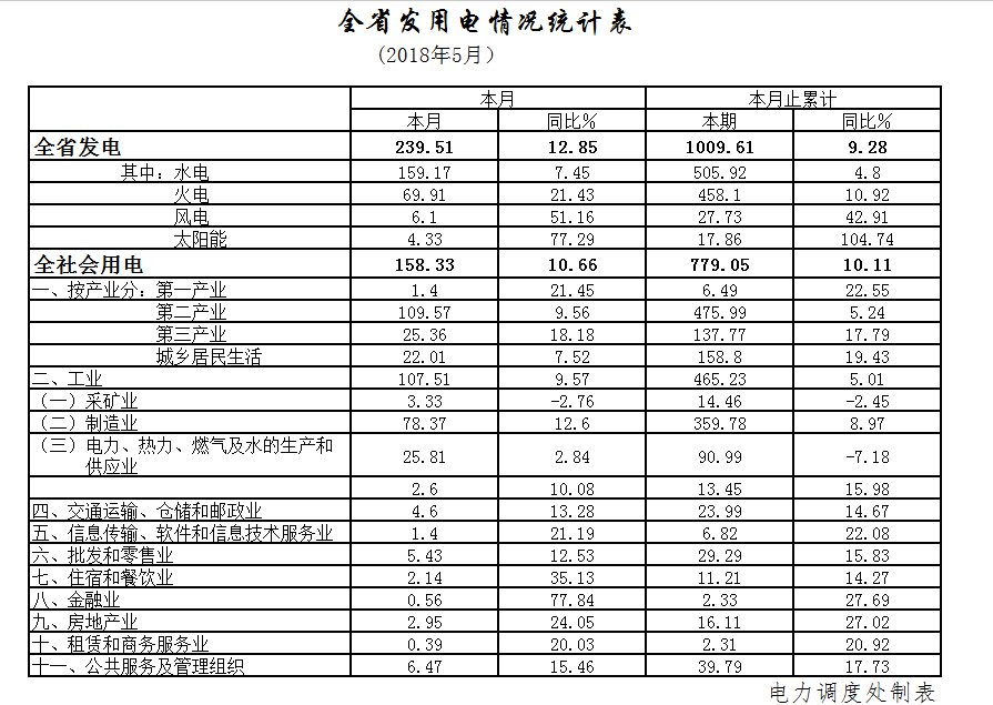 5月份,全省全社會(huì)用電158.33億千瓦時(shí),增長(zhǎng)10.66%,其中工業(yè)用電107.51億千瓦時(shí),增長(zhǎng)9.57%。