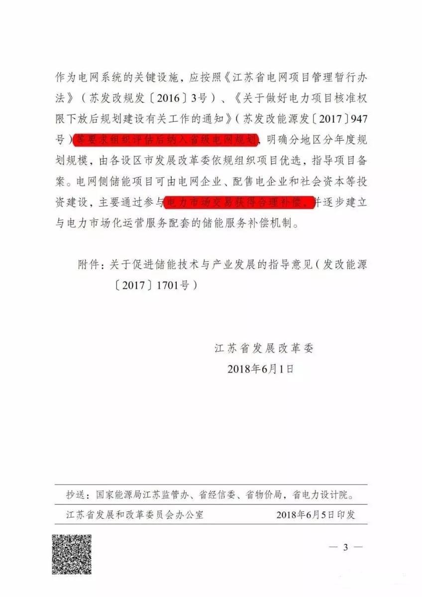 2017年9月,國(guó)網(wǎng)江蘇省電力公司發(fā)布了《客戶側(cè)儲(chǔ)能系統(tǒng)并網(wǎng)管理規(guī)定(試行)》文件,外界普遍解讀為江蘇在全國(guó)率先承認(rèn)儲(chǔ)能電站的獨(dú)立并網(wǎng)地位,這為用戶側(cè)儲(chǔ)能設(shè)備大規(guī)模接入電網(wǎng)解除了最大的障礙。