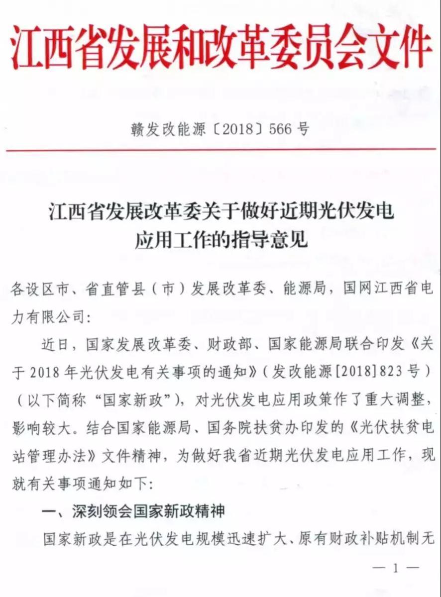 中國(guó)儲(chǔ)能網(wǎng)訊:今日,江西省發(fā)改委下發(fā)《關(guān)于做好近期光伏發(fā)電應(yīng)用工作的指導(dǎo)意見》,