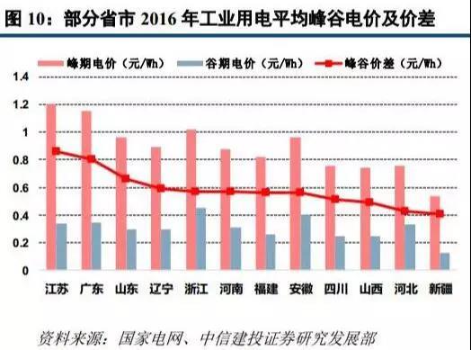 事實(shí)上,在政策之前,部分市場也具備了儲(chǔ)能的商業(yè)模式,如峰谷價(jià)差較多的城市。據(jù)不完全統(tǒng)計(jì),全國34個(gè)省份中,共有16個(gè)省份發(fā)布了峰谷電價(jià)表,包括北京、上海、天津、河北、廣東、江蘇、浙江、山西等。據(jù)業(yè)內(nèi)人士測算,若峰谷價(jià)差超過0.8元,儲(chǔ)能光伏電站的盈利模式可觀,特別是用電量大的工商業(yè)企業(yè)。