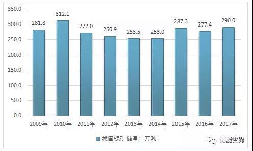 2009-2017年我國鎳礦儲量統(tǒng)計