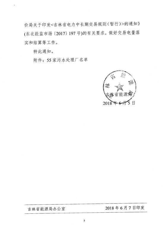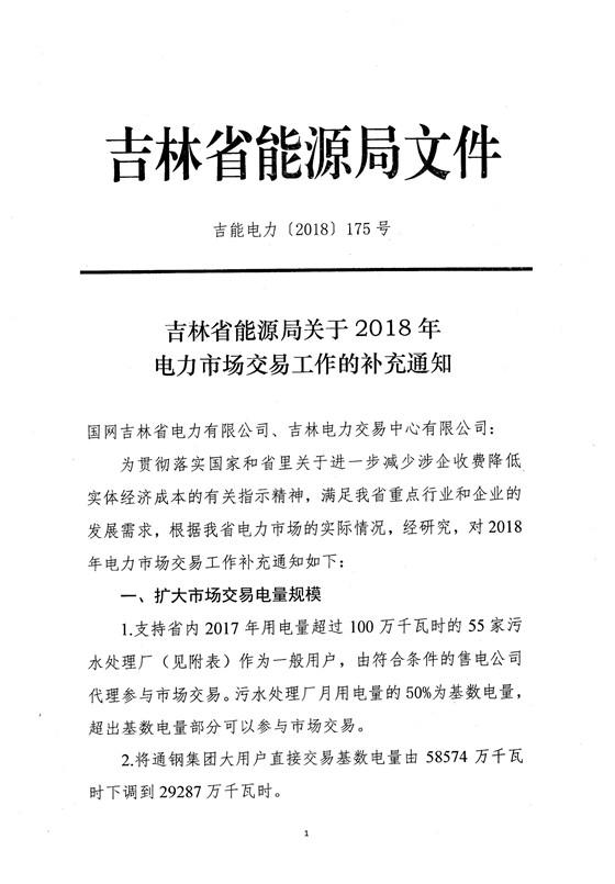 中國(guó)儲(chǔ)能網(wǎng)訊:吉林省能源局日前發(fā)布了《吉林省能源局關(guān)于2018年電力市場(chǎng)交易工作的補(bǔ)充通知(吉能電力〔2018〕175號(hào))》,擴(kuò)大市場(chǎng)交易電量規(guī)模,支持省內(nèi)2017年用電量超過100萬(wàn)千瓦時(shí)的55家污水處理廠(見附表)作為一般用戶,由符合條件的售電公司代理參與市場(chǎng)交易。污水處理廠月用電量的50%為基數(shù)電量,超出基數(shù)電量部分可以參與市場(chǎng)交易。