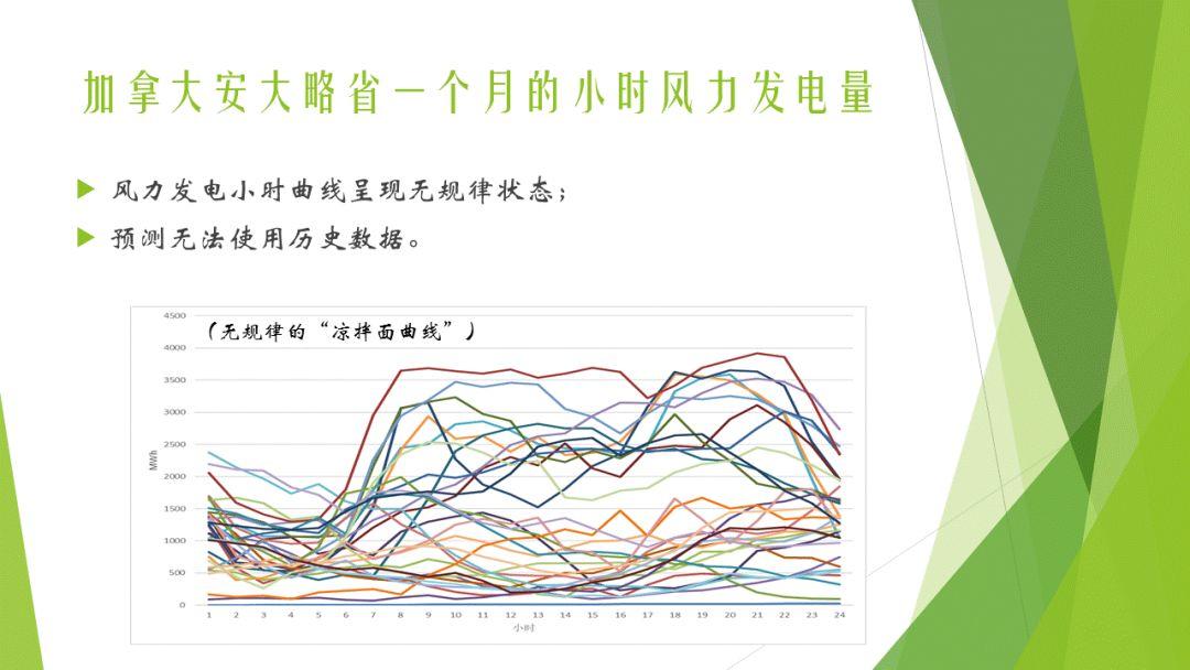 以加拿大安大略省一個月的小時風(fēng)力發(fā)電量數(shù)據(jù)為例,可以看到風(fēng)力發(fā)電小時曲線呈現(xiàn)無規(guī)律狀態(tài)。這意味著,在進(jìn)行預(yù)測時,無法利用歷史數(shù)據(jù)。