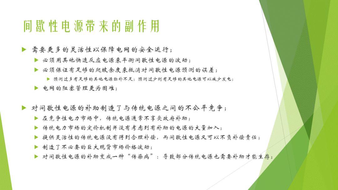 對風(fēng)能、太陽能等可再生能源的高額補(bǔ)貼降低了其發(fā)電成本,但間歇性發(fā)電對系統(tǒng)安全的挑戰(zhàn)和造成的系統(tǒng)成本的增加目前的電力市場中沒有充分考慮。