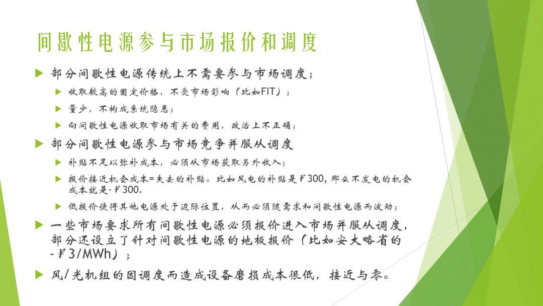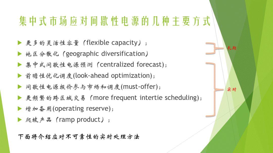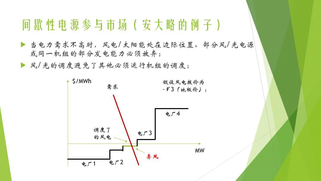 電力市場的設(shè)計中必須考慮可再生能源的影響。傳統(tǒng)電力市場的設(shè)計沒有考慮高比例間歇性可再生能源的情況,因此導(dǎo)致了一些價格信號的扭曲、市場主體之間的不公平競爭等問題。