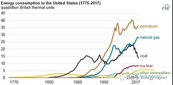 美國的能源消費(fèi)量在國家歷史進(jìn)程中經(jīng)歷了許多變化,從木材作為十八、十九世紀(jì)的主要來源到煤炭和石油利用的開始,再到二十世紀(jì)后期核電的崛起,以及二十一世紀(jì)初的可再生能源的逐步爆發(fā)。