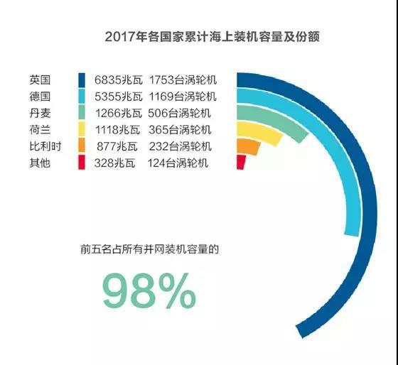2017年,這一新的突破口在德國(guó)能源市場(chǎng)中逐漸清晰。根據(jù)德國(guó)風(fēng)力工業(yè)協(xié)會(huì)(BWE)的統(tǒng)計(jì),2017年德國(guó)新增海上風(fēng)電1.25GW,累計(jì)裝機(jī)5.3GW,德國(guó)也成為僅次于英國(guó)的第二大海上風(fēng)電市場(chǎng)。