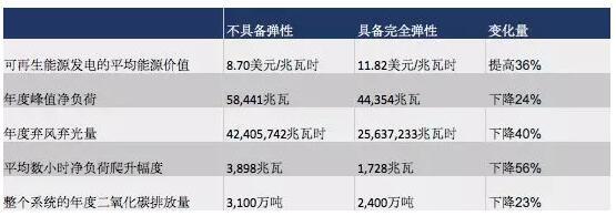 需求彈性不僅可以使需求更好地匹配波動(dòng)性的能源供應(yīng),還能夠以比僅依靠燃?xì)怆姀S綜合成本更低、碳排放更少的系統(tǒng)來平衡可再生能源并滿足峰值負(fù)荷需求??傮w來看,在模擬系統(tǒng)中利用需求彈性能夠每年避免大約20億美元的發(fā)電成本,并減少1/5的二氧化碳排放。這一量級(jí)的彈性需求還能夠減少40%的可再生能源棄風(fēng)棄光,降低24%的凈負(fù)荷峰值(總負(fù)荷減去可再生發(fā)電),并減少56%的數(shù)小時(shí)負(fù)荷爬升(“鴨子曲線”)平均幅度。