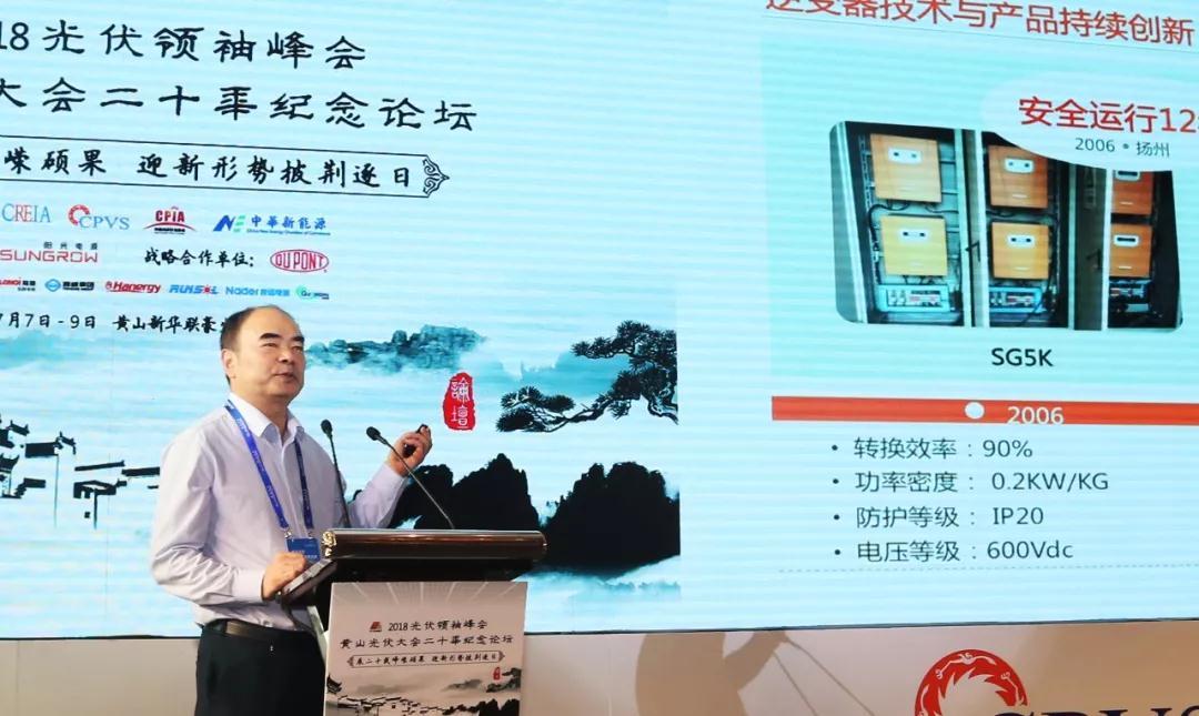 論壇以“展二十載崢嶸碩果,迎新形勢(shì)披荊逐日”為主題,由中國循環(huán)經(jīng)濟(jì)協(xié)會(huì)可再生能源專業(yè)委員會(huì)、中國可再生能源學(xué)會(huì)光伏專業(yè)委員會(huì)等單位主辦,陽光電源承辦,百余名行業(yè)專家、業(yè)內(nèi)領(lǐng)袖、優(yōu)秀企業(yè)家重返黃山,同憶初心,積極應(yīng)對(duì)政策、市場等產(chǎn)業(yè)環(huán)境的多重攻勢(shì),曹仁賢應(yīng)邀發(fā)表了《光伏發(fā)電系統(tǒng)最新技術(shù)及展望》的主旨演講。