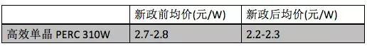 表1:新政前后單晶310W PERC組件價(jià)格對(duì)比