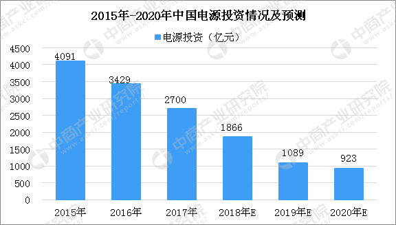 2017年,電源工程建設(shè)完成投資2700億元,與2016年相比下降20.8%。2018年年1-5月,我國(guó)主要發(fā)電企業(yè)電源工程完成投資726億元,同比下降5.4%。預(yù)計(jì)2018年我國(guó)電源投資總額將達(dá)到1866億元,2020年投資總額將降至千億元下方,為923億元。