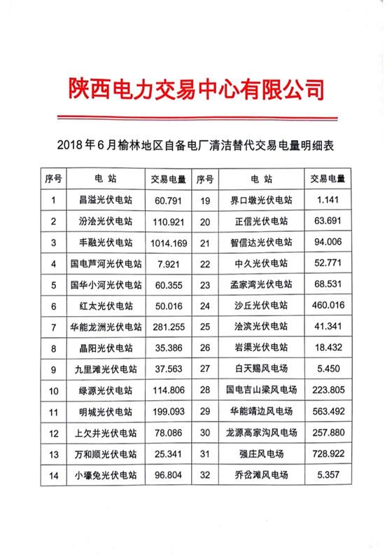 依據(jù)陜西省發(fā)改委《關(guān)于在榆林地區(qū)開(kāi)展清潔能源替代試點(diǎn)工作的函(陜發(fā)改運(yùn)行[2017]619號(hào))》文件精神要求,按照交易組織方案要求,現(xiàn)將2018年4-6月份榆林地區(qū)自備電廠清潔替代交易執(zhí)行情況公示如下,詳見(jiàn)附件。