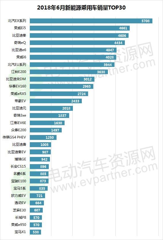 根據(jù)乘聯(lián)會數(shù)據(jù),經(jīng)電動汽車資源網(wǎng)梳理,2018年6月,北汽新能源打造的新一代爆款車型北汽EX系列不負所望的奪得了新能源汽車銷量桂冠,銷售了5708臺,不過這應(yīng)該也與前期未交付訂單,集中交付有關(guān),7月是否還能保持目前的銷量我們且拭目以待。奪得亞軍的是榮威Ei5,銷售了4661臺,排在第三位的是比亞迪秦,銷售了4606臺。此外6月銷量超過三千臺的新能源乘用車還有奇瑞eQ(4434)、比亞迪e6(4047)、榮威i6(4028)、北汽EU系列(3944)、江鈴E200(3638)、比亞迪宋DM(3012)。
