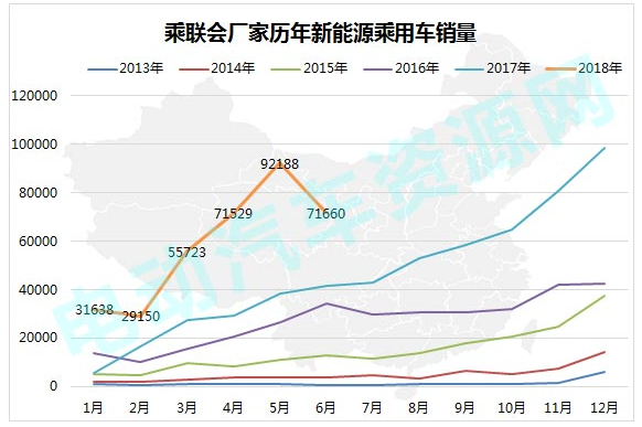 中國儲能網(wǎng)訊:據(jù)乘聯(lián)會廠家數(shù)據(jù),2018年6月新能源乘用車銷量達到7.17萬臺,降22%,同比增長74%。2018年1~6月,新能源乘用車銷量達35萬臺,同比增長1.2倍。