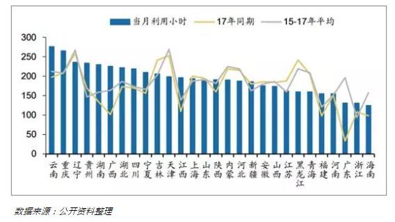 同比來(lái)看,2018年1-5月山西(255小時(shí))、山東(251小時(shí))和吉林(243小時(shí))利用小時(shí) 同比提高較多,而重慶(-77小時(shí))、青海(-138小時(shí))和四川(-197小時(shí))利用小 時(shí)同比回落較多。