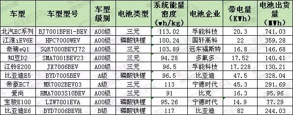 十大暢銷車型配套電池參數(shù)統(tǒng)計表