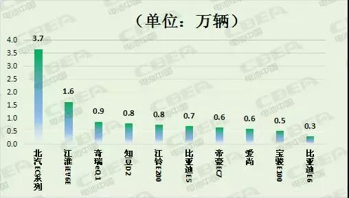 動力電池應用分會研究部統(tǒng)計了2018年1-5月純電動乘用車銷量排名前十的車型分別為:北汽EC系列、江淮iEV6E、奇瑞eQ1、知豆D2、江鈴E200、比亞迪E5、帝豪EC7、愛尚、寶駿E100、比亞迪E6,銷量合計占純電動乘用車總銷量的70%。其中包括7款A00級車型、2款A級車型和1款B級車型。