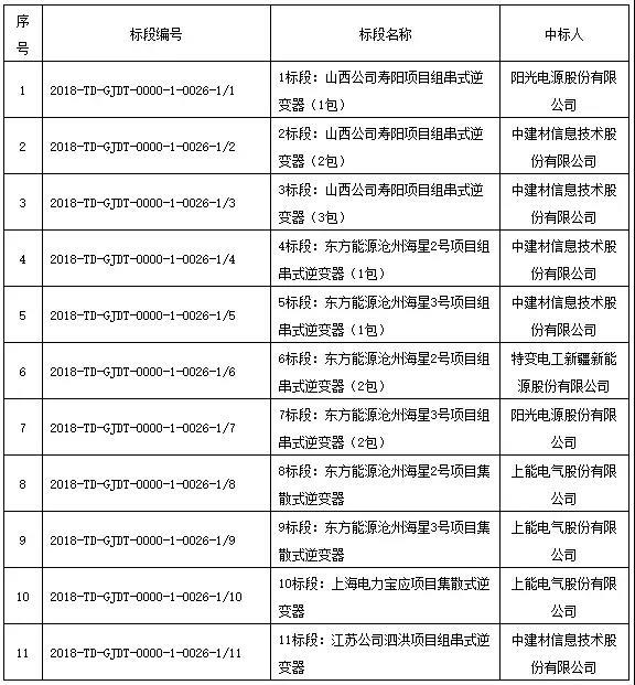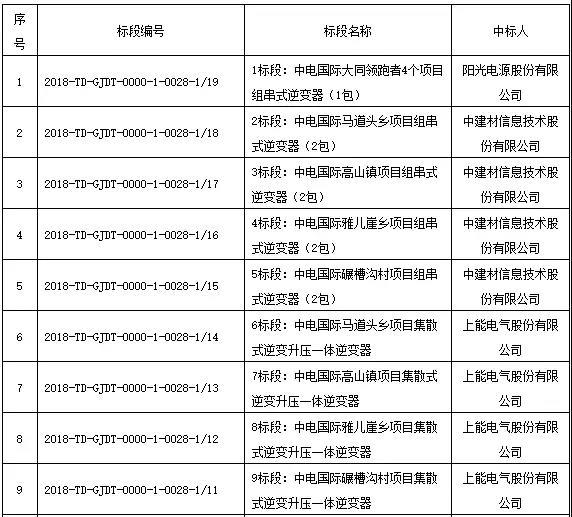 7月7日,國家電投第一、二批光伏領跑者項目共計1.3GW并網(wǎng)逆變器設備的招標結果皆已公布。在兩批招標中,光伏逆變器分別為11個標段和19個標段,上能電氣包攬集散式9個標段和集中式2個標段,中標容量460MW。此外,中建材共中標14個標段,陽光電源與特變分別中標4個和1個。根據(jù)公示內(nèi)容,此次集采主要是由這四家包攬。